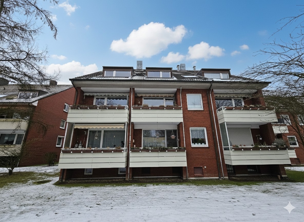 Die zum Verkauf stehende Wohnung wurde im Jahr 1972 fertiggestellt und befindet sich im 1. OG eines gepflegten Mehrfamilienhauses mit insgesamt 18 Wohneinheiten, die sich auf zwei Hauseingänge verteilen. Das Gebäude ist in zweigeschossiger Bauweise errichtet und verfügt über ein ausgebautes Dachgeschoss. Das Objekt ist vollständig unterkellert. Die Wohnung ist mit isolierverglasten Kunststofffenstern (Bj. 2013) ausgestattet. Beheizt wird das Mehrfamilienhaus über eine Gasheizung (Bj. 2002). Die Beheizung erfolgt über konventionelle Heizkörper, während die Warmwasserversorgung in den Wohneinheiten über Durchlauferhitzer erfolgt. Zur Wohnung gehören ein großzügiger Kellerraum sowie eine Einzelgarage, die zusätzlichen Stauraum und komfortables Parken bietet.